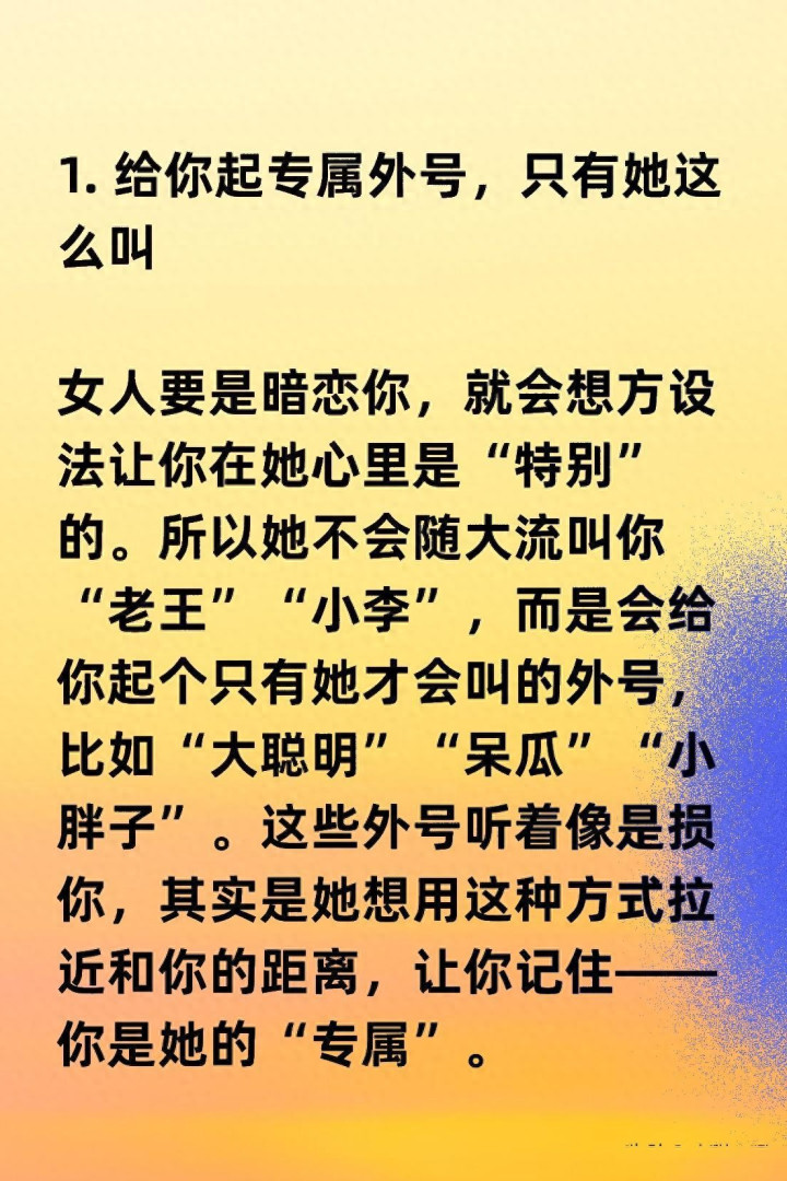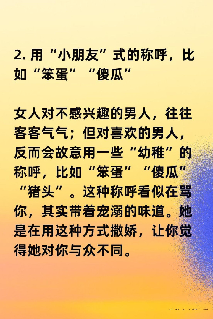 随机辰你会发现,成年东谈主的宇宙其实藏着一些没明说的小套路,尤其在厚谊相似里,称号的变化险些即是一场无声的博弈。之前还在“哥”来“哥”去,遽然某天她管你叫名字了,或者用专属的小昵称,哪怕仅仅语气变得亲昵了小数,系数这个词东谈主的嗅觉齐不一样了。这可不是浅易的换个称号,也不是马虎嘴快就带出来,好多东谈主其实是在用这种样式试探互相的距离感,以致是在抒发一种愿望:能不成别一直停留在安全的、业务化的圈子里,能不成更走心、更针织小数。